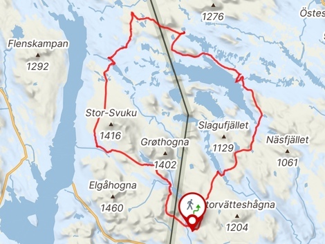 Grövelsjön Fjällstation - Svukuriset, ca. 23 km, ca. 450 Hm bergauf & bergab