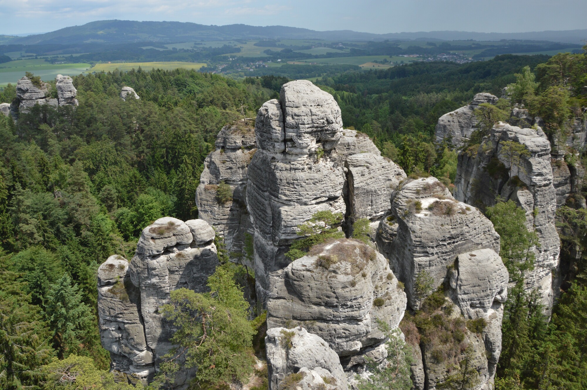 Abschlusswanderung in die "Braunauer Wände" im idyllisch, gelegenen "Braunauer Ländchen". Die das Tal überragenden Felswände geben uns zahlreiche, hübsche Ausblicke, weit in die böhmische Landschaft hinein. Sogar das Riesengebirge mit der Schneekoppe können wir am Horizont ausmachen.