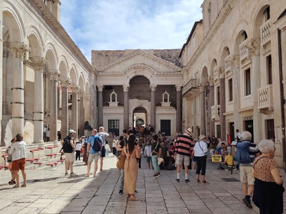 Fahrt mit dem Linienbus von Zadar nach Split. Split ist die zweitgrößte Stadt Kroatiens und beeindruckt mit dem mächtigen Diokletianpalast aus römischer Zeit. Wir streifen durch die verwinkelten Gassen und genießen die einzigartige Atmosphäre.