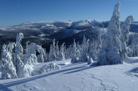 Das Riesengebirge liegt im Nordosten Tschechiens an der Grenze zu Polen und ist das Reich des sagenumwobenen Bergeist Rübezahl. So manchen Scherz spielt der "Alte" den Wanderern im Gebirge. Im Winter ist das Riesengebirge ein Refugium des Skisports in Tschechien. Schon 1881 tauchen hier die ersten Ski in Mitteleuropa auf. Bald bevölkern die Skiläufer auf ihren schmalen Brettern Berg und Tal. In unserer Langlaufwoche stellen wir uns ganz in die Tradition des Skilaufens im Riesengebirge und unternehmen täglich herrliche Skilanglauftouren durch "Rübezahls Reich".