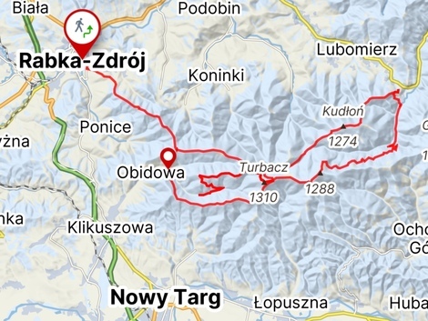Turbacz – Obidowa - Nowy Targ, ca. 15 Km, ca. 50 Hm bergauf & 550 Hm bergab