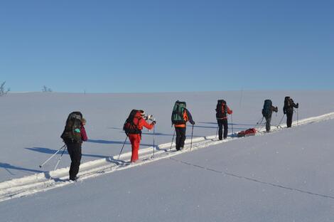 Eine anspruchsvolle Skilanglauftour, geeignet für Reisende mit Trekkingerfahrung. Komfortverzicht und Gemeinschaftssinn sind hier unabdingbar. Wir übernachten in einfachen aber beheizbaren Wanderunterkünften, ohne elektr. Strom und fließend Wasser (Stockbetten mit Matratzenlager). Während des Trekkings gibt es keine Duschen und WC, stattdessen Trockentoilette. Duschen gibt es nur am Start in Kvikkjokk und am Ende in Saltoluokta. Unterwegs in Aktse gibt es eine Sauna. Die Skitouren verlaufen auf markierten Wegen durch das Fjäll (Kahlgebirge), zum überwiegenden Teil auf Scooterspuren. Es gibt keine gespurten Loipen! Die Grundkenntnisse des Skilaufens - Lenken, Bremsen, Anhalten müssen unbedingt beherrscht werden. Die Tagesetappen betragen ca. 15 - 25 km. Der Proviant der Gruppe wird mit einer Pulka (Ziehschlitten) transportiert. Sie müssen willens und in der Lage sein, diese Pulka zu ziehen. Startgewicht des Schlittens ca. 35 kg. Die Mahlzeiten werden gemeinsam zubereitet. Für die Übernachtung in den Hütten ist eine STF-Mitgliedschaft erforderlich. Kosten ca. 45 EUR / Person / Jahr. Wer keinen Ausweis vorweisen kann, muss vor vor Ort einen Aufpreis von ca. 35 EUR pro Nacht zahlen.