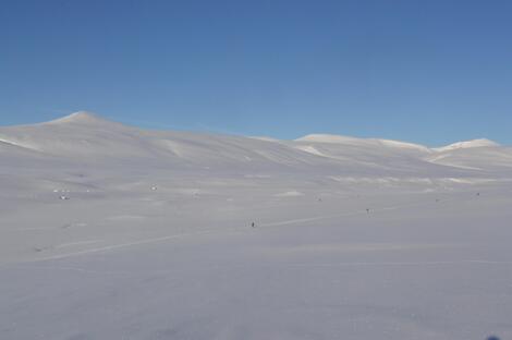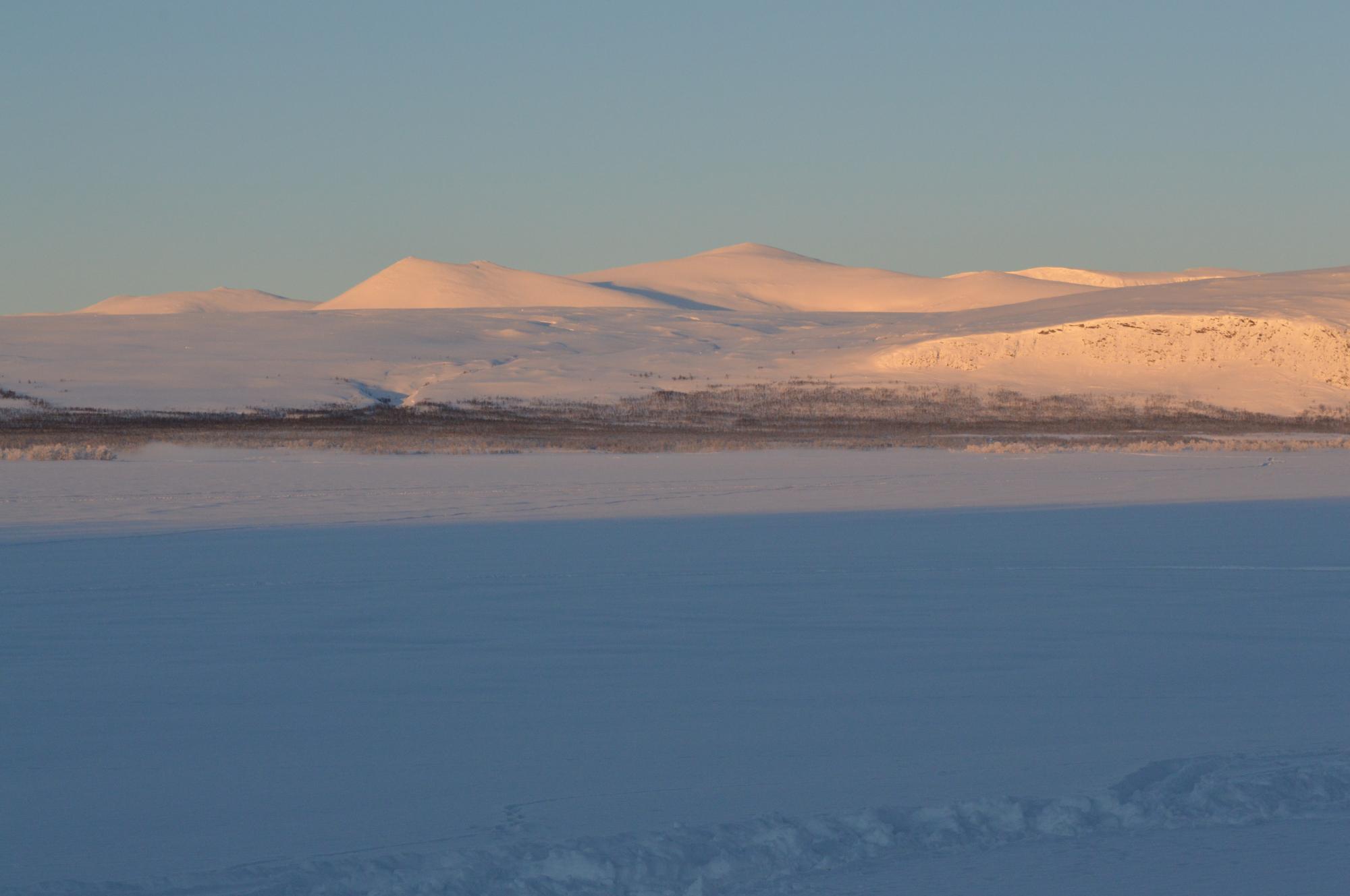 Am Morgen ein steiler Aufstieg zum nächsten Hochplateau mit grandiosen Weitblick. Anschließend endlich mal eine Abfahrt. Die Hütte Sitojaure liegt direkt neben einer Samensiedlung am nördlichen Ufer eines See?s. Die Siedlung ist im Winter nicht bewohnt.