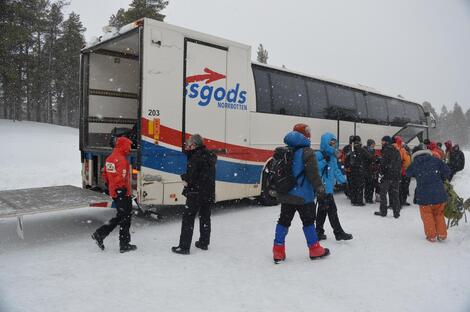 Am Morgen Ankunft im hohen Norden. Bustransfer nach Jokkmokk (Dauer ca. 1 Stunde). Dort gemeinsamer Lebensmitteleinkauf. Anschließend Transfer zum Startpunkt unserer Skitour nach Kvikkjokk (Dauer ca. 1,5 Stunden, Entfernung, ca. 120 km). Vor Ort in Kvikkjokk eine erste kleine Eingehtour auf Ski. Entfernung, ca. 5 - 7 km. Dabei machen wir uns mit der Notfallausrüstung vertraut und erlernen, z.B. die Handhabung eines sogenannten Windsacks. Am Abend gemeinsames Abendessen.