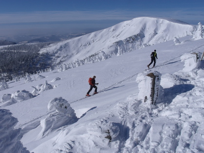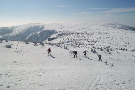 Die Skitour selbst führt uns in einer Woche durchs ganze Gebirge. In kurzen, gut zu bewältigenden Tagesetappen gehen wir mit eigenem Rucksack von Hütte zu Hütte. Neben tief verschneiten Wäldern im Tal und herrlichen Aussichten auf dem Kamm ist sicher die "Überschreitung" der winterlichen Schneekoppe der abenteuerliche Höhepunkt dieser Tour. Für unser Vorwärtskommen, nutzen wir weitestgehend, stangenmarkierte Skiwanderwege, selten gespurte Loipen. Bei schlechtem Wetter weichen wir auf Alternativrouten im Tal und in geschützten Lagen aus. Die Skitour ist seit 2007 in unserem Programm und damit unsere beliebteste Skilanglaufreise.